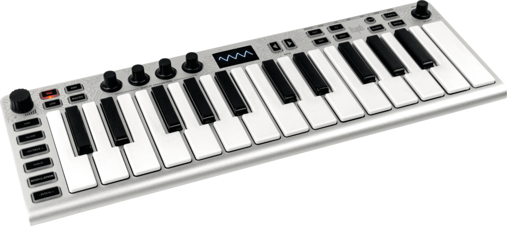 ESI社の新製品Xsynthは、2025年5月にベルリンで開催されたSUPERBOOTH25で発表されたばかりのポータブルかつ高機能なデジタル・シンセサイザーだ。長らく高品質なオーディオ・インターフェースやMIDI 製品を展開してきたESI だが、本格的なシンセサイザーとしてはこのXsynthが新たな挑戦とも言えるだろう。その本体は、同社の人気MIDI キーボード、Xkeyシリーズをベースにしており、アルミニウム製の超薄型筐体は驚くほど軽量ながら堅牢で、デザイン性にも優れる。25鍵の鍵盤はベロシティ対応で、さらにポリフォニック・アフタータッチまで搭載されているため、非常に豊かで繊細な演奏が可能だ。